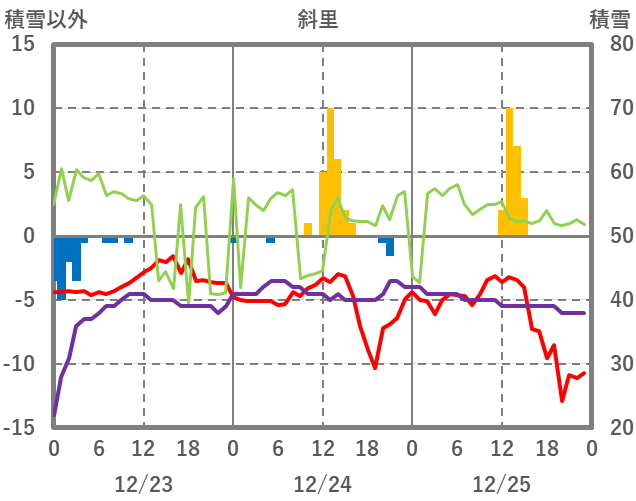 | 日 | 時 | 気温 | 降水 | 風向/風速 | 日照 | 積雪 | 降雪 |