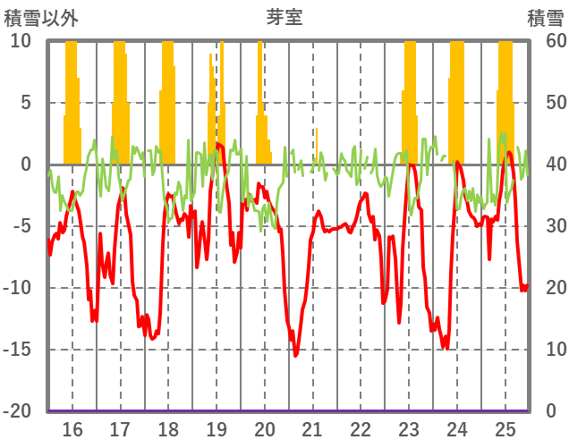 | 日 | 時 | 気温 | 降水 | 風向/風速 | 日照 | 積雪 | 降雪 |