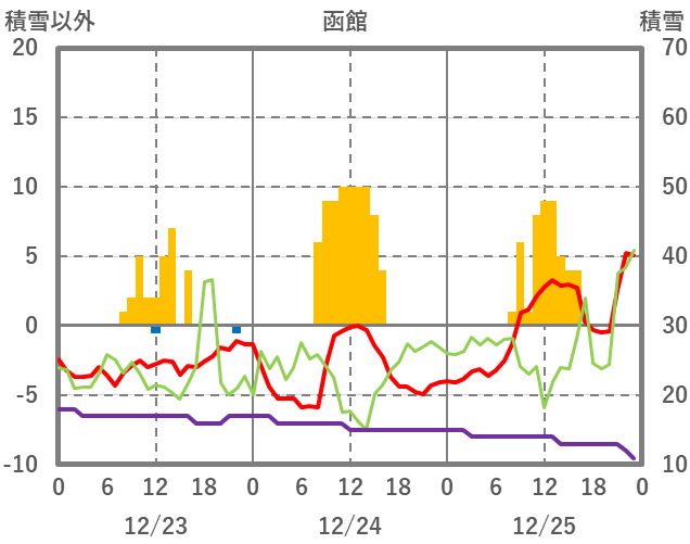 | 日 | 時 | 気温 | 降水 | 風向/風速 | 日照 | 積雪 | 降雪 |