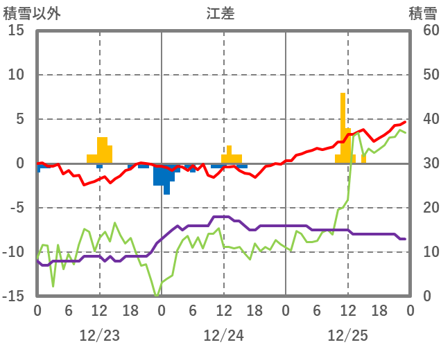 | 日 | 時 | 気温 | 降水 | 風向/風速 | 日照 | 積雪 | 降雪 |