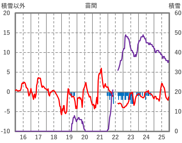 | 日 | 時 | 気温 | 降水 | 風向/風速 | 日照 | 積雪 | 降雪 |