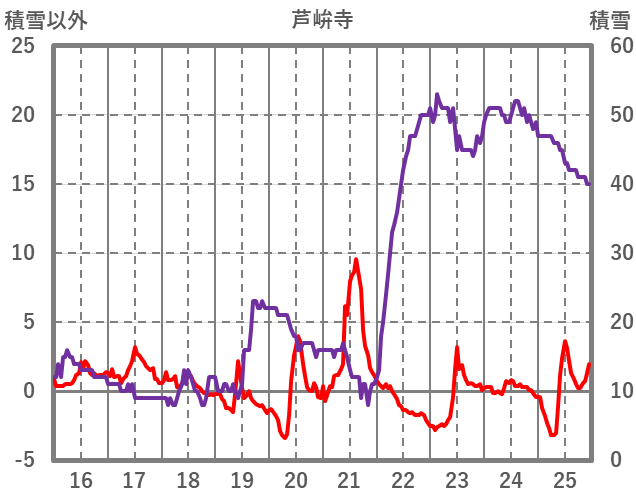 | 日 | 時 | 気温 | 降水 | 風向/風速 | 日照 | 積雪 | 降雪 |