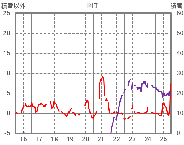 | 日 | 時 | 気温 | 降水 | 風向/風速 | 日照 | 積雪 | 降雪 |