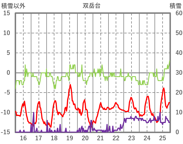 | 日 | 時 | 気温 | 降水 | 風向/風速 | 日照 | 積雪 | 降雪 |