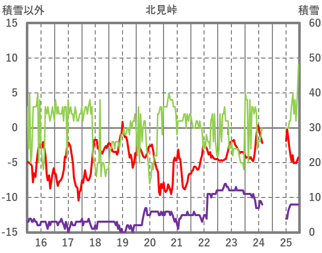 | 日 | 時 | 気温 | 降水 | 風向/風速 | 日照 | 積雪 | 降雪 |