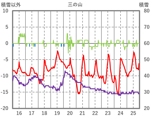 | 日 | 時 | 気温 | 降水 | 風向/風速 | 日照 | 積雪 | 降雪 |