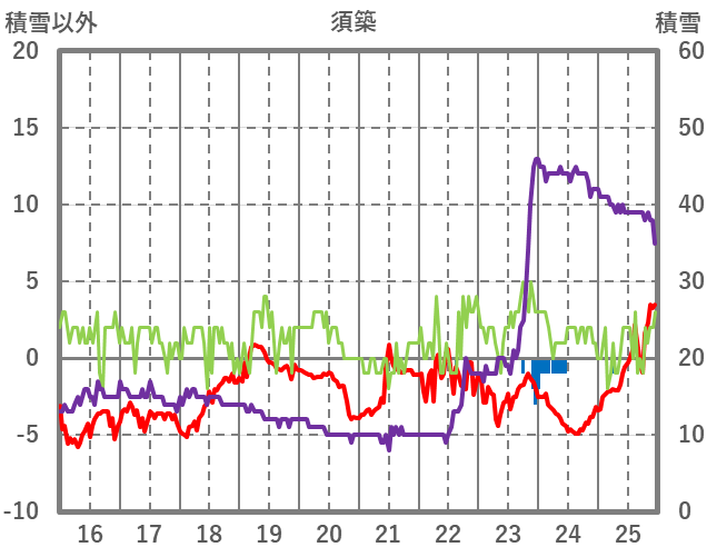 | 日 | 時 | 気温 | 降水 | 風向/風速 | 日照 | 積雪 | 降雪 |