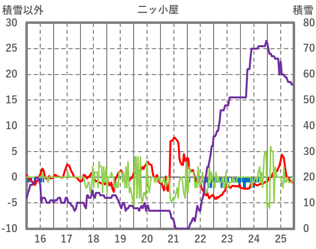 | 日 | 時 | 気温 | 降水 | 風向/風速 | 日照 | 積雪 | 降雪 |