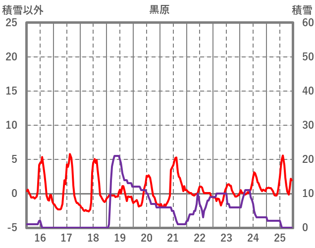 | 日 | 時 | 気温 | 降水 | 風向/風速 | 日照 | 積雪 | 降雪 |