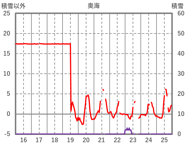 | 日 | 時 | 気温 | 降水 | 風向/風速 | 日照 | 積雪 | 降雪 |