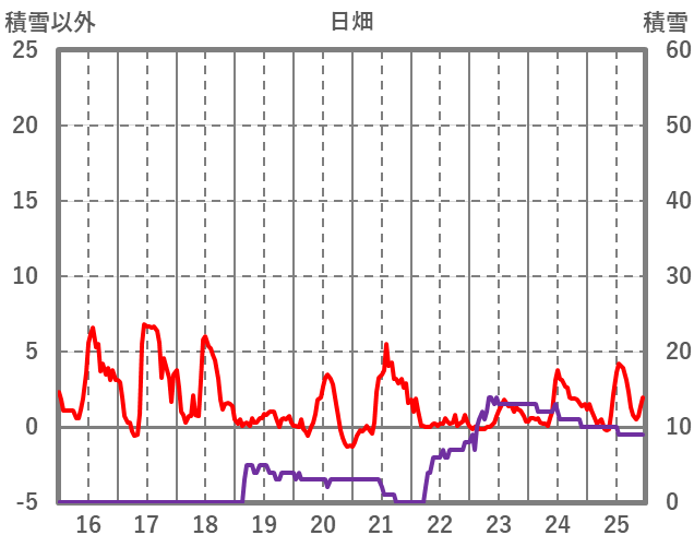 | 日 | 時 | 気温 | 降水 | 風向/風速 | 日照 | 積雪 | 降雪 |