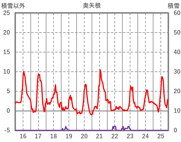 | 日 | 時 | 気温 | 降水 | 風向/風速 | 日照 | 積雪 | 降雪 |