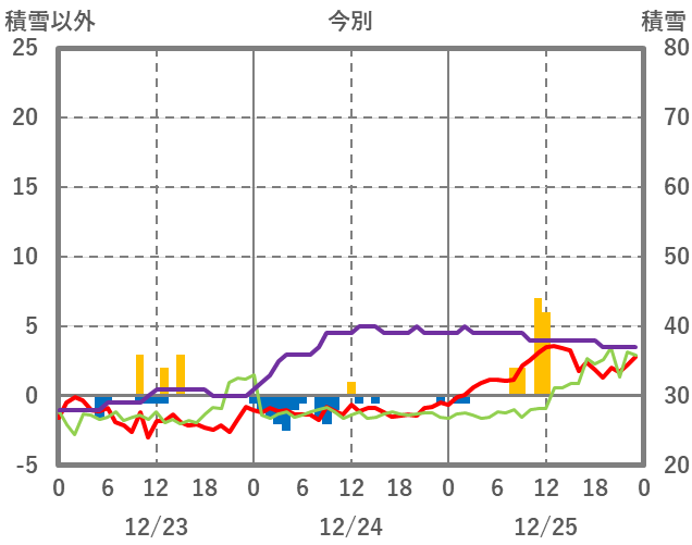 | 日 | 時 | 気温 | 降水 | 風向/風速 | 日照 | 積雪 | 降雪 |