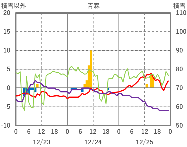 | 日 | 時 | 気温 | 降水 | 風向/風速 | 日照 | 積雪 | 降雪 |
