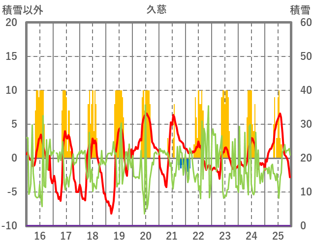| 日 | 時 | 気温 | 降水 | 風向/風速 | 日照 | 積雪 | 降雪 |