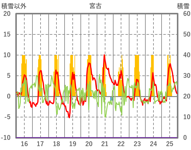 | 日 | 時 | 気温 | 降水 | 風向/風速 | 日照 | 積雪 | 降雪 |