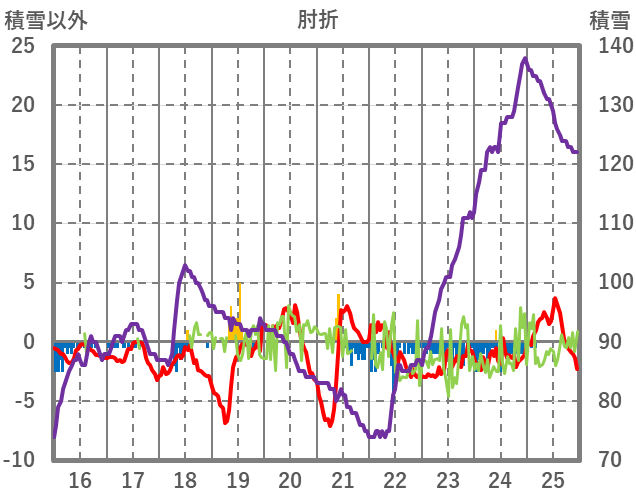 | 日 | 時 | 気温 | 降水 | 風向/風速 | 日照 | 積雪 | 降雪 |