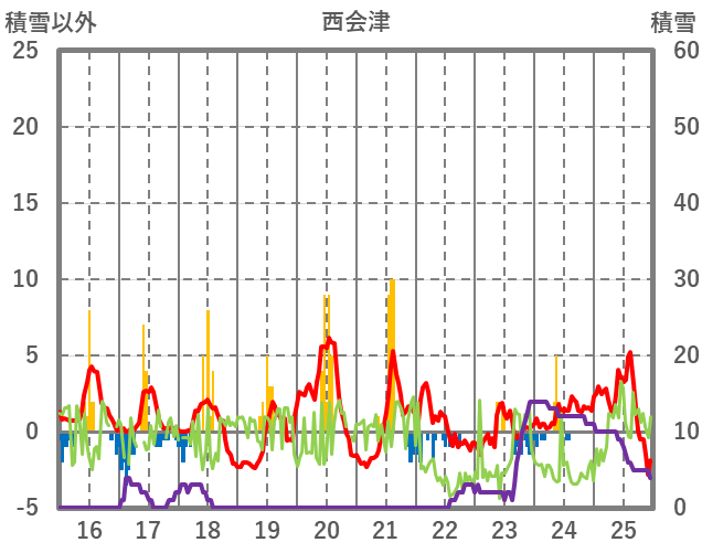 | 日 | 時 | 気温 | 降水 | 風向/風速 | 日照 | 積雪 | 降雪 |