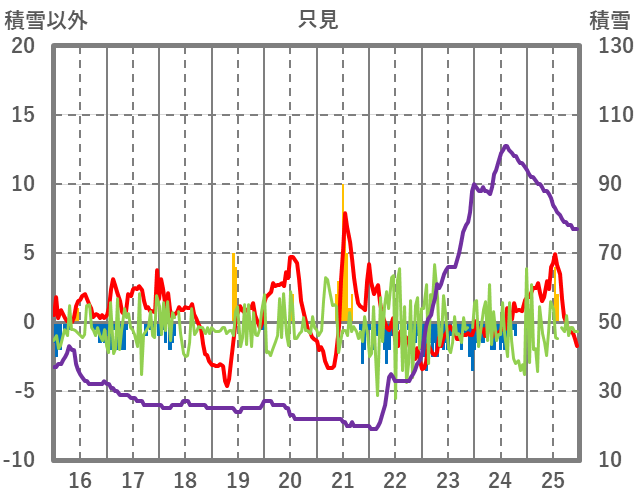| 日 | 時 | 気温 | 降水 | 風向/風速 | 日照 | 積雪 | 降雪 |