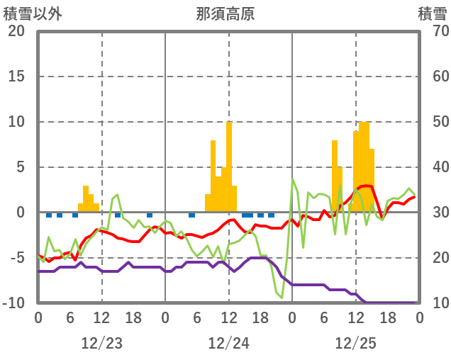| 日 | 時 | 気温 | 降水 | 風向/風速 | 日照 | 積雪 | 降雪 |
