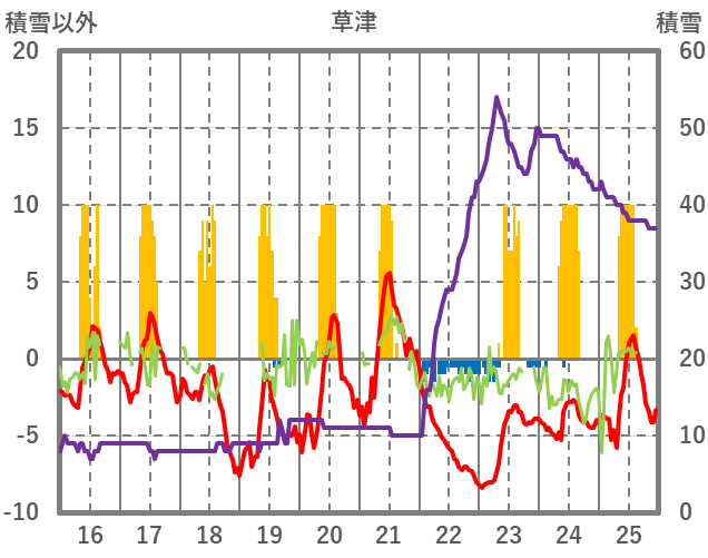 | 日 | 時 | 気温 | 降水 | 風向/風速 | 日照 | 積雪 | 降雪 |