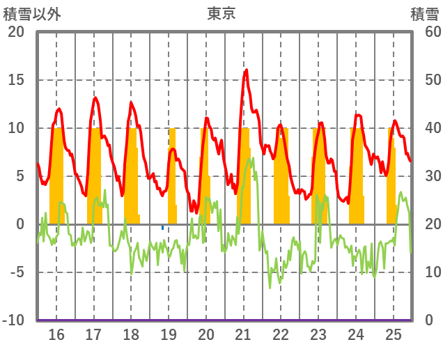 | 日 | 時 | 気温 | 降水 | 風向/風速 | 日照 | 積雪 | 降雪 |