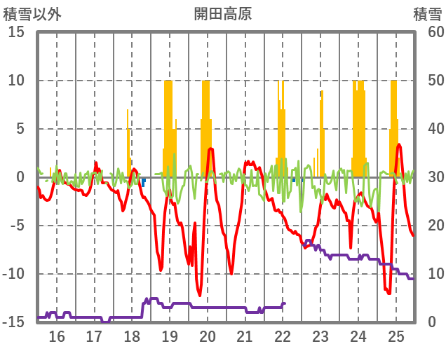 | 日 | 時 | 気温 | 降水 | 風向/風速 | 日照 | 積雪 | 降雪 |