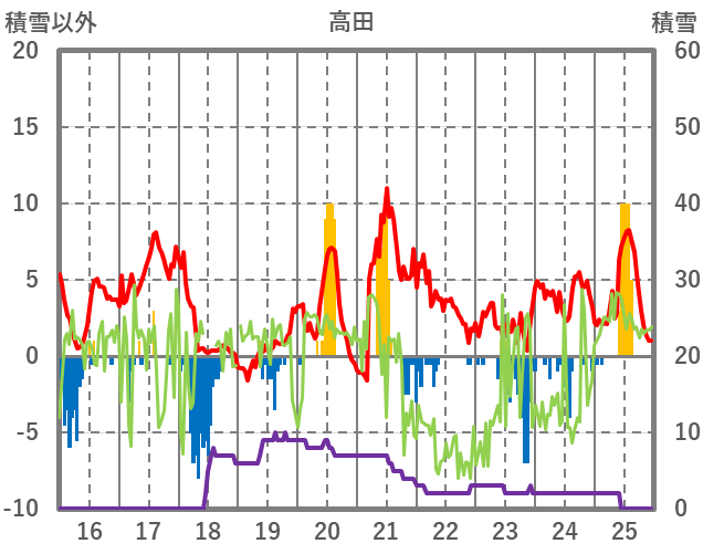 | 日 | 時 | 気温 | 降水 | 風向/風速 | 日照 | 積雪 | 降雪 |