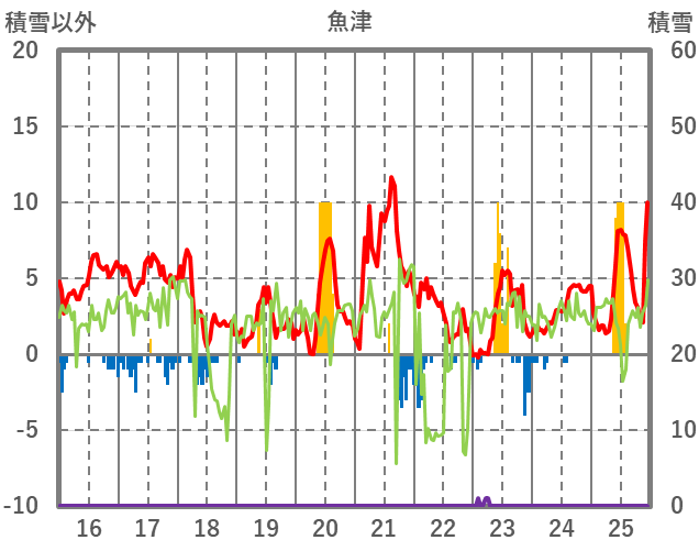 | 日 | 時 | 気温 | 降水 | 風向/風速 | 日照 | 積雪 | 降雪 |