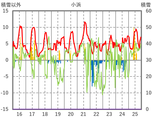 | 日 | 時 | 気温 | 降水 | 風向/風速 | 日照 | 積雪 | 降雪 |