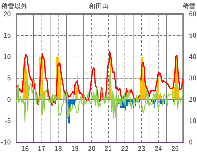 | 日 | 時 | 気温 | 降水 | 風向/風速 | 日照 | 積雪 | 降雪 |