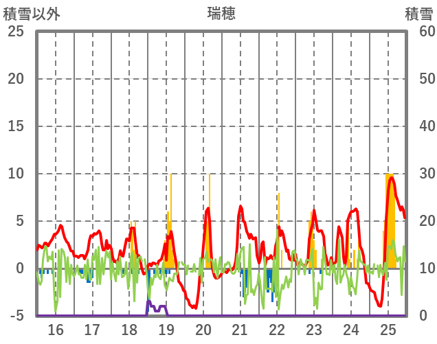 | 日 | 時 | 気温 | 降水 | 風向/風速 | 日照 | 積雪 | 降雪 |