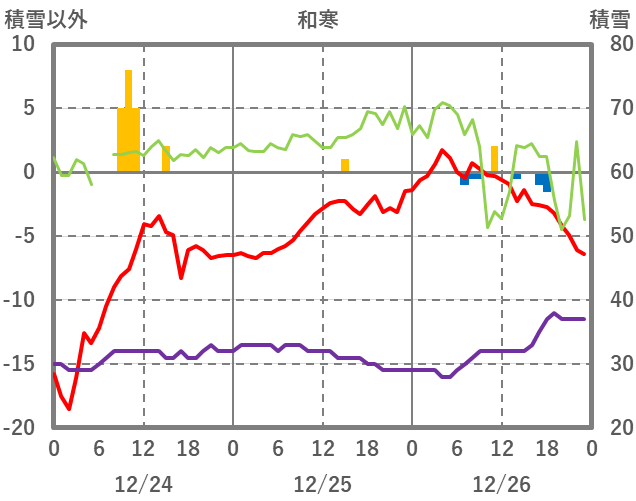 | 日 | 時 | 気温 | 降水 | 風向/風速 | 日照 | 積雪 | 降雪 |