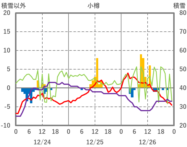 | 日 | 時 | 気温 | 降水 | 風向/風速 | 日照 | 積雪 | 降雪 |