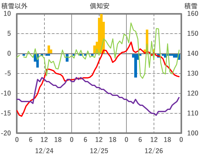 | 日 | 時 | 気温 | 降水 | 風向/風速 | 日照 | 積雪 | 降雪 |