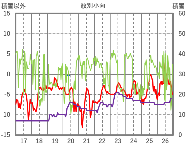 | 日 | 時 | 気温 | 降水 | 風向/風速 | 日照 | 積雪 | 降雪 |