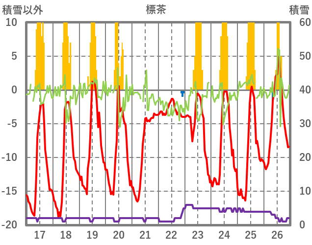 | 日 | 時 | 気温 | 降水 | 風向/風速 | 日照 | 積雪 | 降雪 |