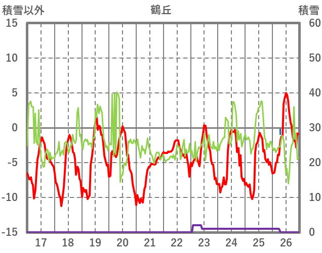 | 日 | 時 | 気温 | 降水 | 風向/風速 | 日照 | 積雪 | 降雪 |