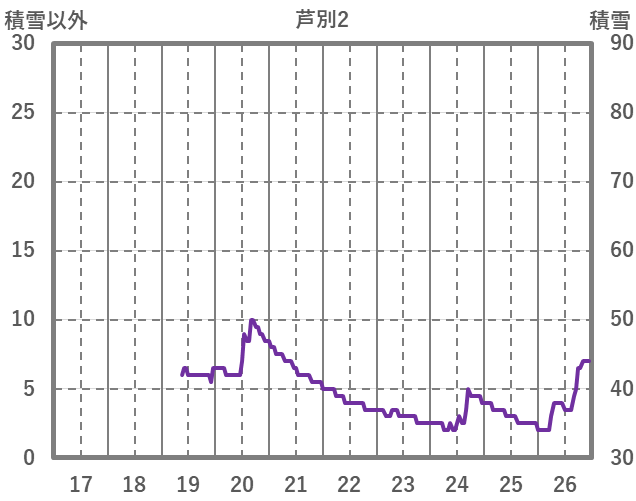 | 日 | 時 | 気温 | 降水 | 風向/風速 | 日照 | 積雪 | 降雪 |