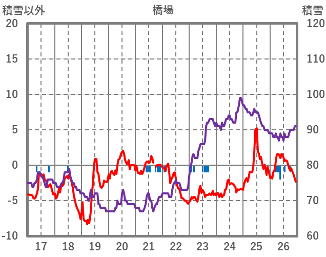| 日 | 時 | 気温 | 降水 | 風向/風速 | 日照 | 積雪 | 降雪 |