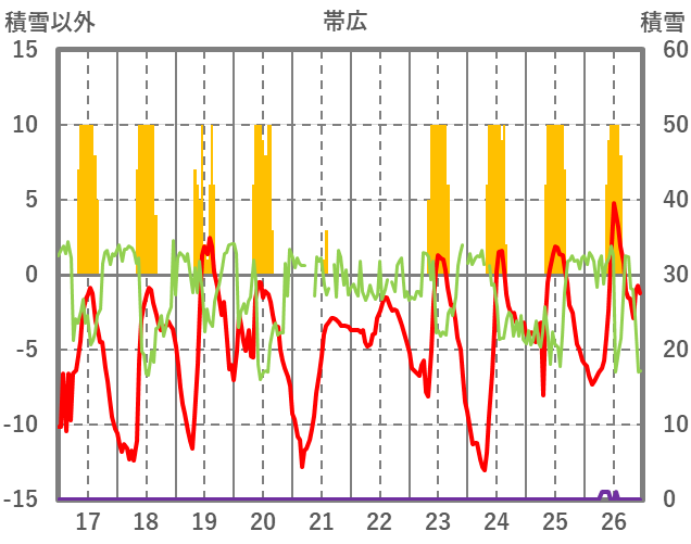 | 日 | 時 | 気温 | 降水 | 風向/風速 | 日照 | 積雪 | 降雪 |