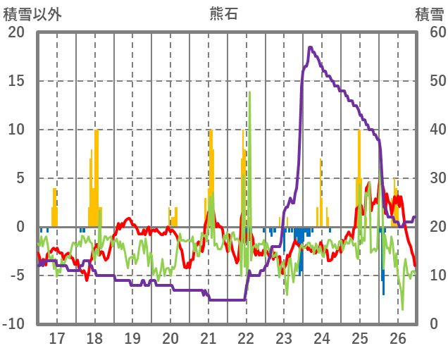 | 日 | 時 | 気温 | 降水 | 風向/風速 | 日照 | 積雪 | 降雪 |