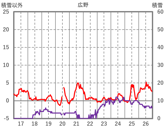 | 日 | 時 | 気温 | 降水 | 風向/風速 | 日照 | 積雪 | 降雪 |