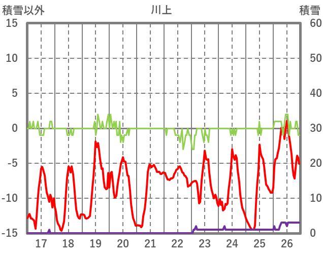 | 日 | 時 | 気温 | 降水 | 風向/風速 | 日照 | 積雪 | 降雪 |