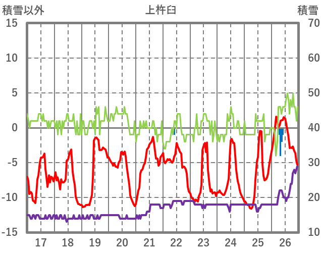 | 日 | 時 | 気温 | 降水 | 風向/風速 | 日照 | 積雪 | 降雪 |