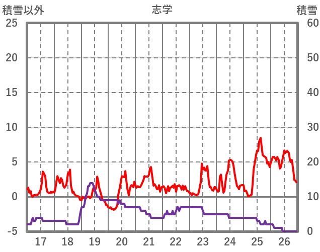 | 日 | 時 | 気温 | 降水 | 風向/風速 | 日照 | 積雪 | 降雪 |