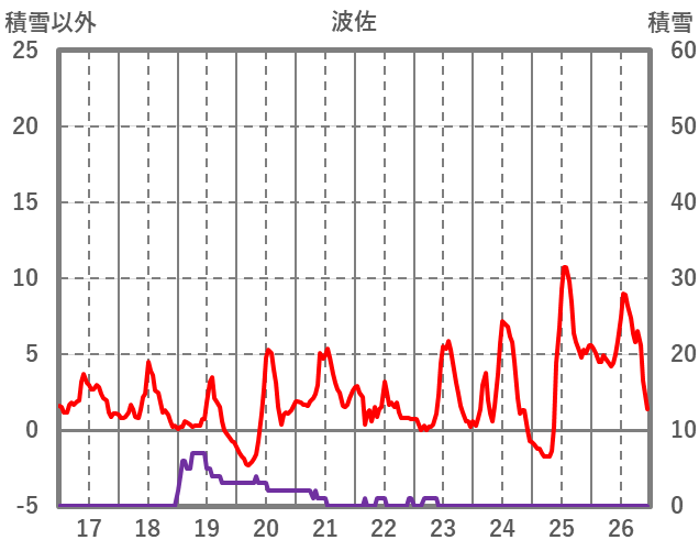 | 日 | 時 | 気温 | 降水 | 風向/風速 | 日照 | 積雪 | 降雪 |