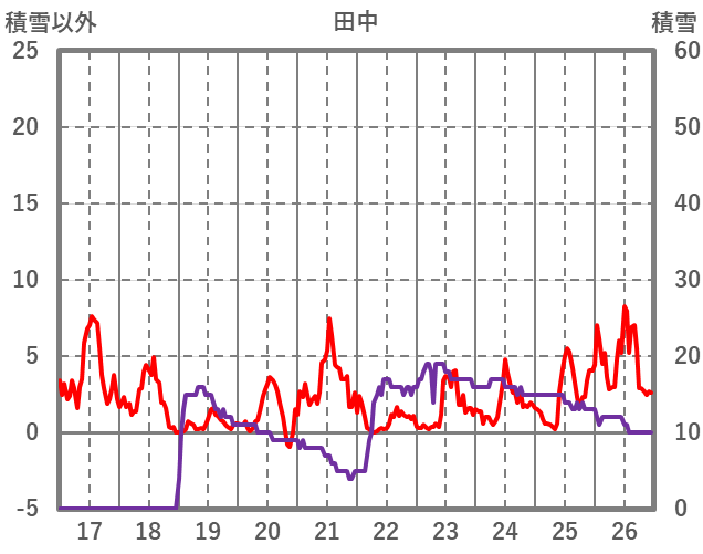 | 日 | 時 | 気温 | 降水 | 風向/風速 | 日照 | 積雪 | 降雪 |