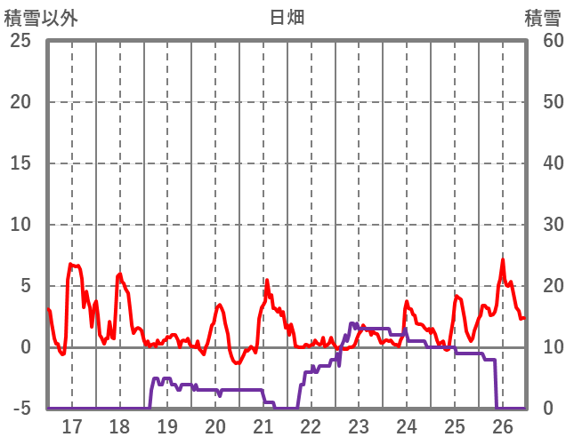 | 日 | 時 | 気温 | 降水 | 風向/風速 | 日照 | 積雪 | 降雪 |
