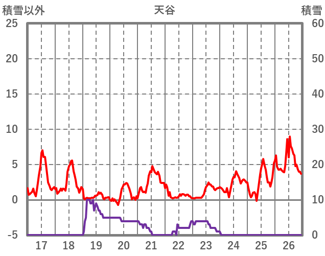 | 日 | 時 | 気温 | 降水 | 風向/風速 | 日照 | 積雪 | 降雪 |